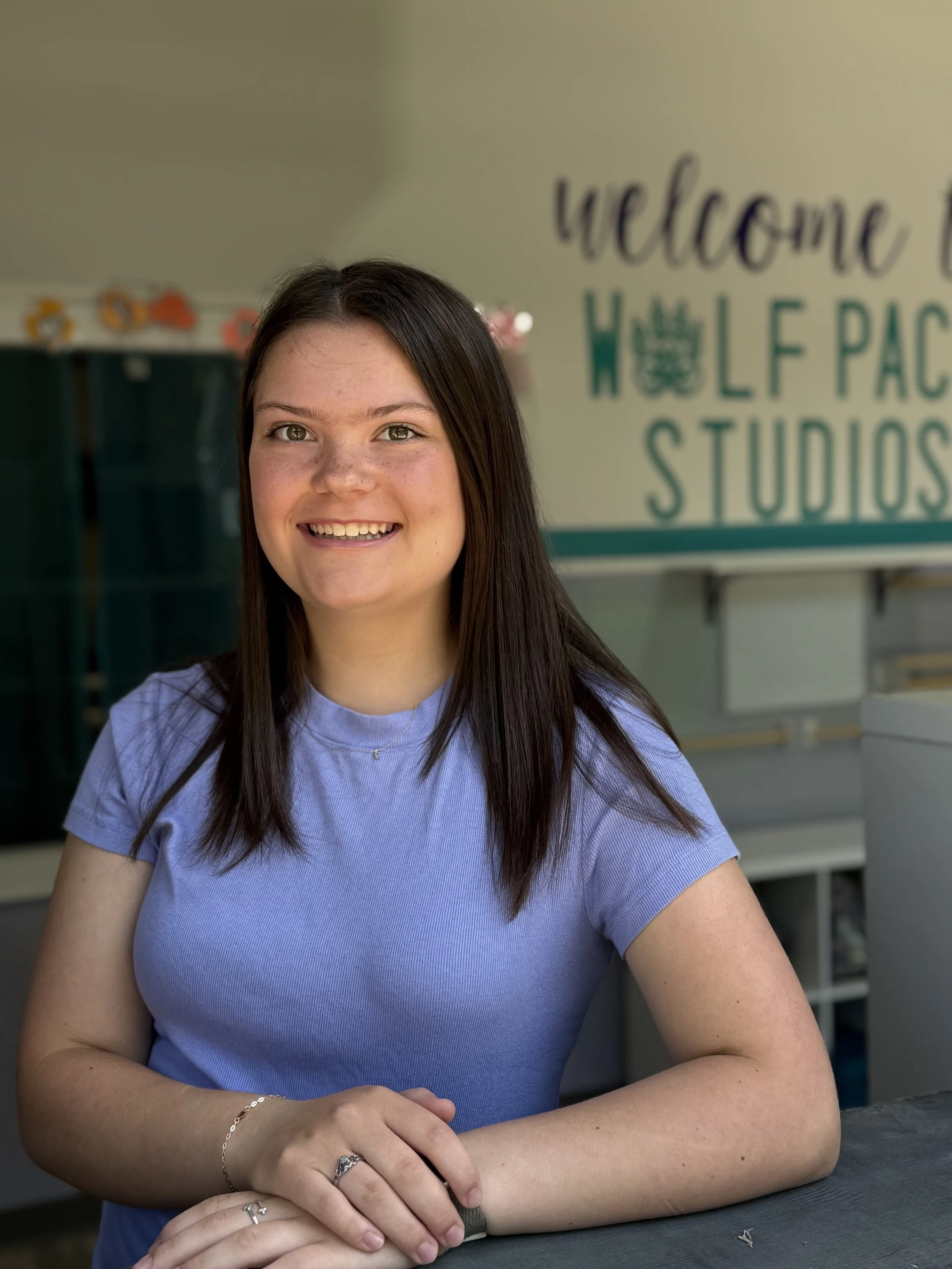 Kristina has been dancing at Mactir since 2017 and became a coach in 2025. When she isn't dancing, she enjoys singing, fiddling, and helping out at the studio. She has been competing since 2020 and has competed at multiple regional competitions. Kristina loves working with younger dancers and is excited to meet all the newcomers joining the Wolf Pack!